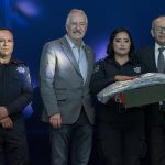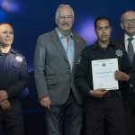 En la ceremonia conmemorativa, el alcalde entregó de manera oficial uniformes nuevos y reconocimientos a los elementos más destacados. Asimismo, se condecoró la labor de dos agentes, quienes después de 25 años de prestar sus servicios en dicha corporación se retiraron de su oficio.