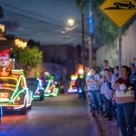 En punto de las 18:30 horas, el primer contingente del desfile dio inicio a este recorrido con una muestra de autos con luces y emotivos mensajes navideños; la Reina de la Navidad Camila I, encabezó el primer carro alegórico, seguido de mojigangas acompañadas de una banda de viento y de los personajes principales: Melchor, Gaspar y Baltazar.