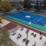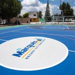 Se aplicó pintura acrílica antiderrapante en 718 metros cuadrados de la superficie de la cancha, incluyendo la preparación y rehabilitación de la superficie ya existente. se rehabilitó el mobiliario existente: juegos infantiles; mesas y bancos; y las porterías. Se suministró y colocó de un módulo infantil tipo jumbo con capacidad para 47 niños; y se colocaron 8 piezas de botes de basura; 8 equipos de gimnasio al aire libre; y se instalaron 11 piezas de bancas de acero.