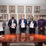 Presidieron la firma de convenio: Rodrigo Mesa Jiménez, secretario de Ayuntamiento; Mauro Aragón Chávez, titular de la Secretaría de Servicios Públicos; Víctor Manuel Gutiérrez Cubría, representante legal y José Francisco Ríos Fernández, director de asuntos corporativos de Mars Incorporated.