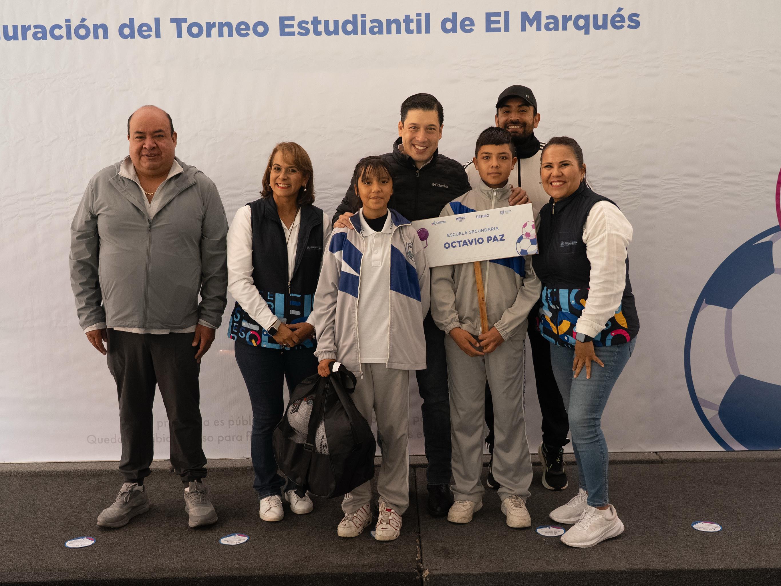 Con la finalidad de fortalecer la sana convivencia y promover la práctica del deporte entre niñas, niños y jóvenes marquesinos, el presidente municipal de El Marqués, Rodrigo Monsalvo Castelán, encabezó la inauguración oficial del Torneo Estudiantil El Marqués.