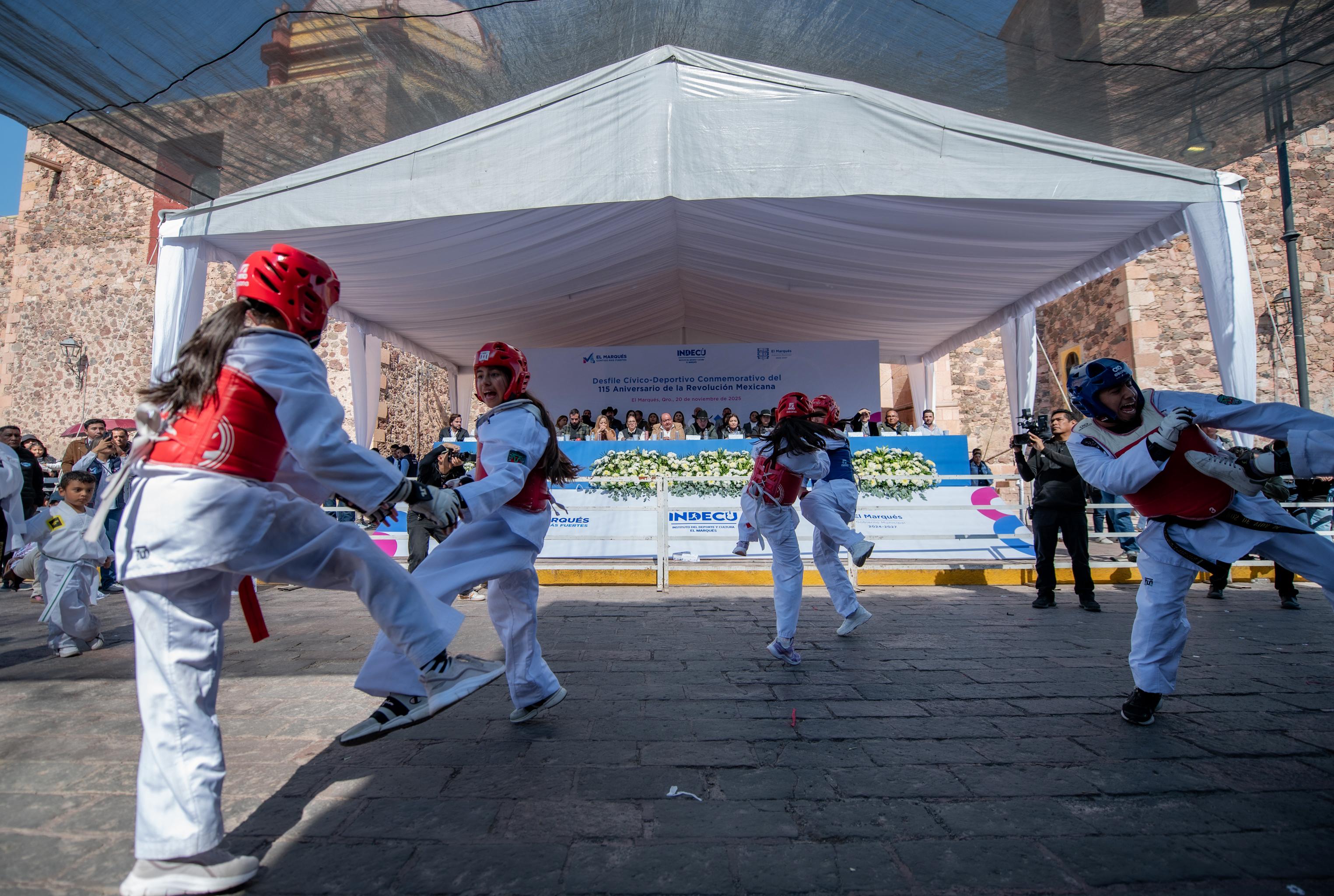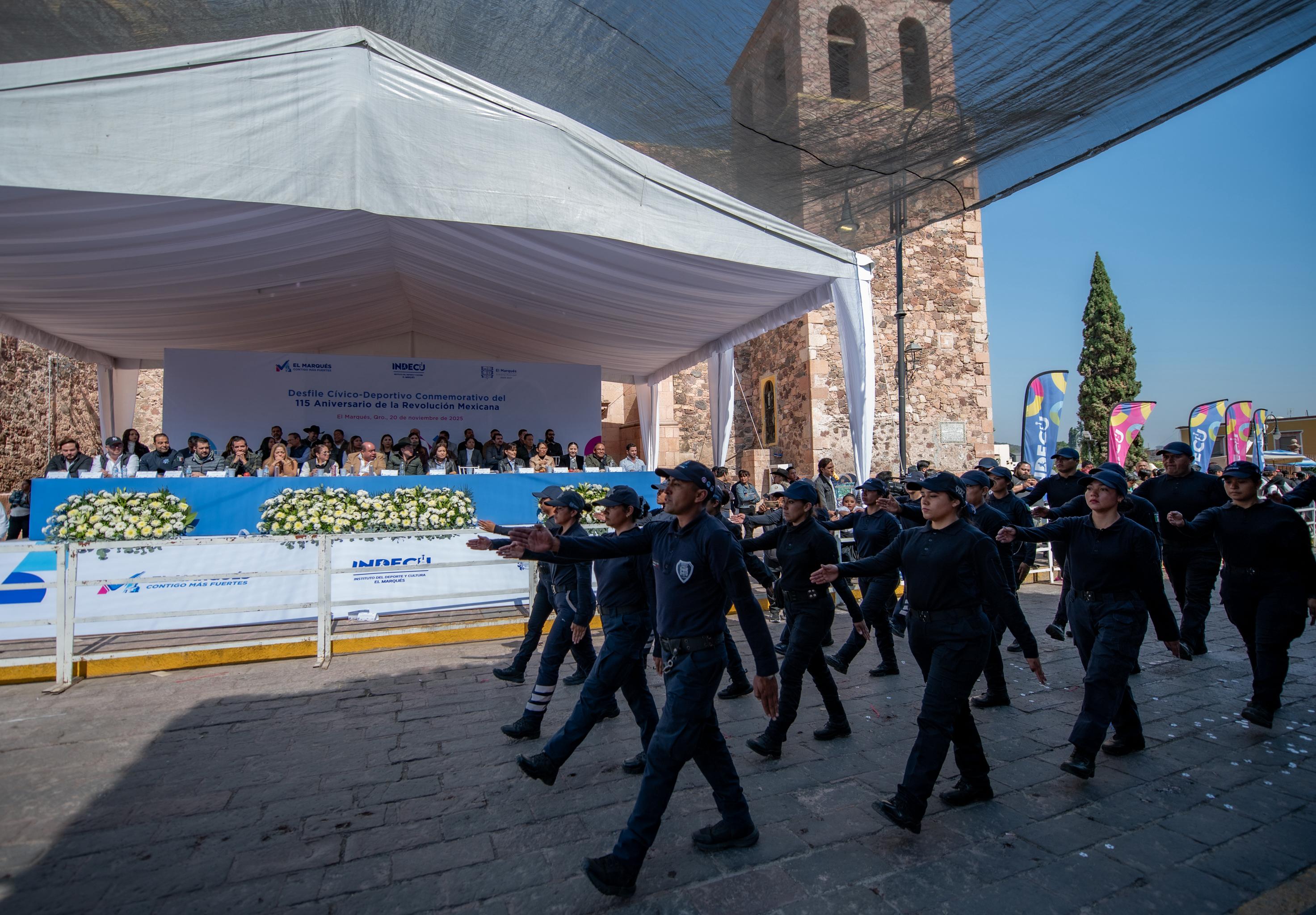 El presidente municipal de El Marqués, Rodrigo Monsalvo Castelán, acompañado de su gabinete, presenció el desfile cívico deportivo en conmemoración del CXV aniversario del inicio de la Revolución Mexicana, donde participaron 33 contingentes y asistieron alrededor de 3 mil 500 personas entre espectadores y partícipes.