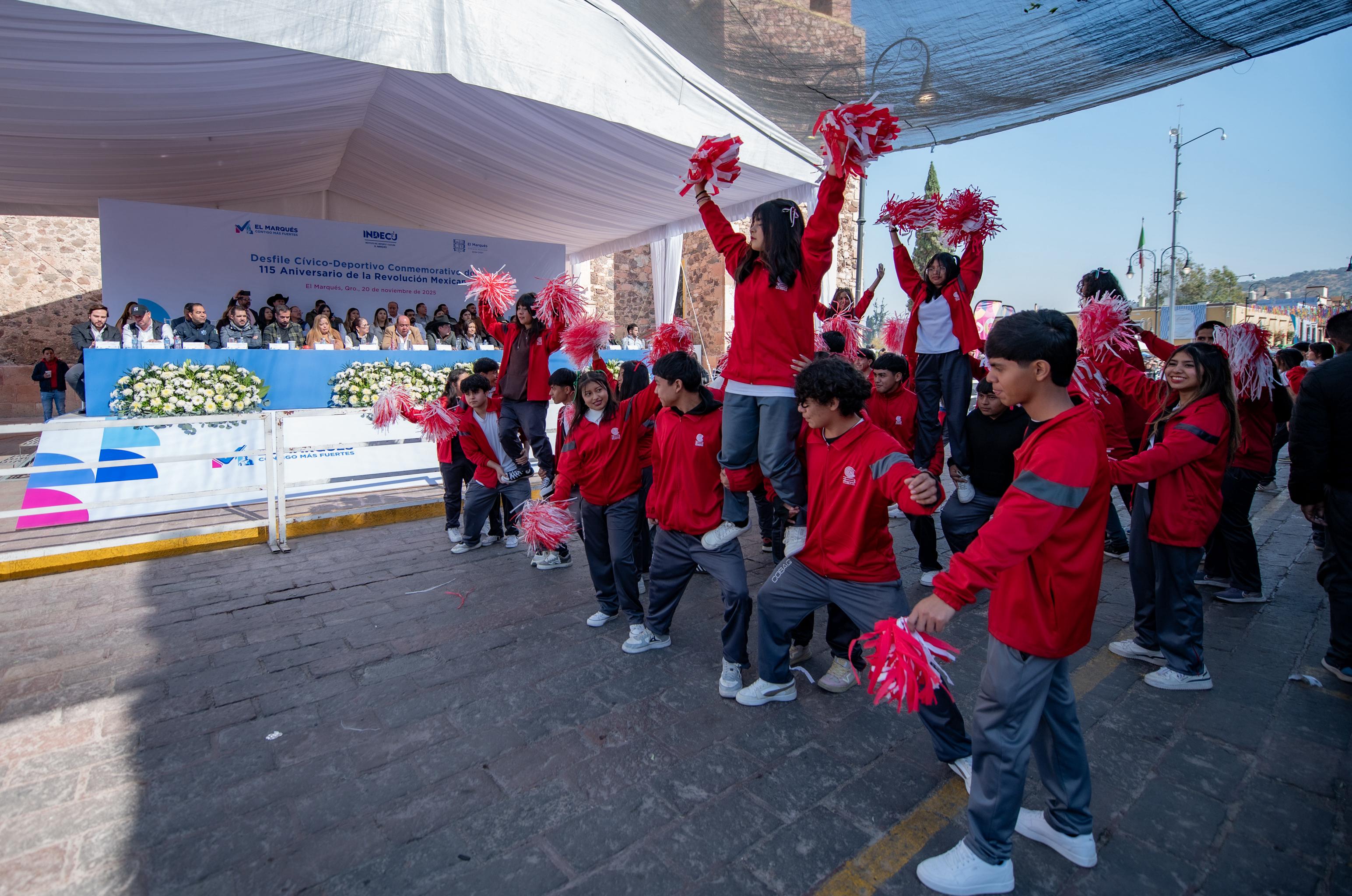 Asimismo, felicitó a las y los estudiantes, a integrantes de academias deportivas, institutos y dependencias municipales, así como a todas las familias marquesinas, por participar con entusiasmo en el desfile que conmemora 115 años del inicio de la Revolución Mexicana.