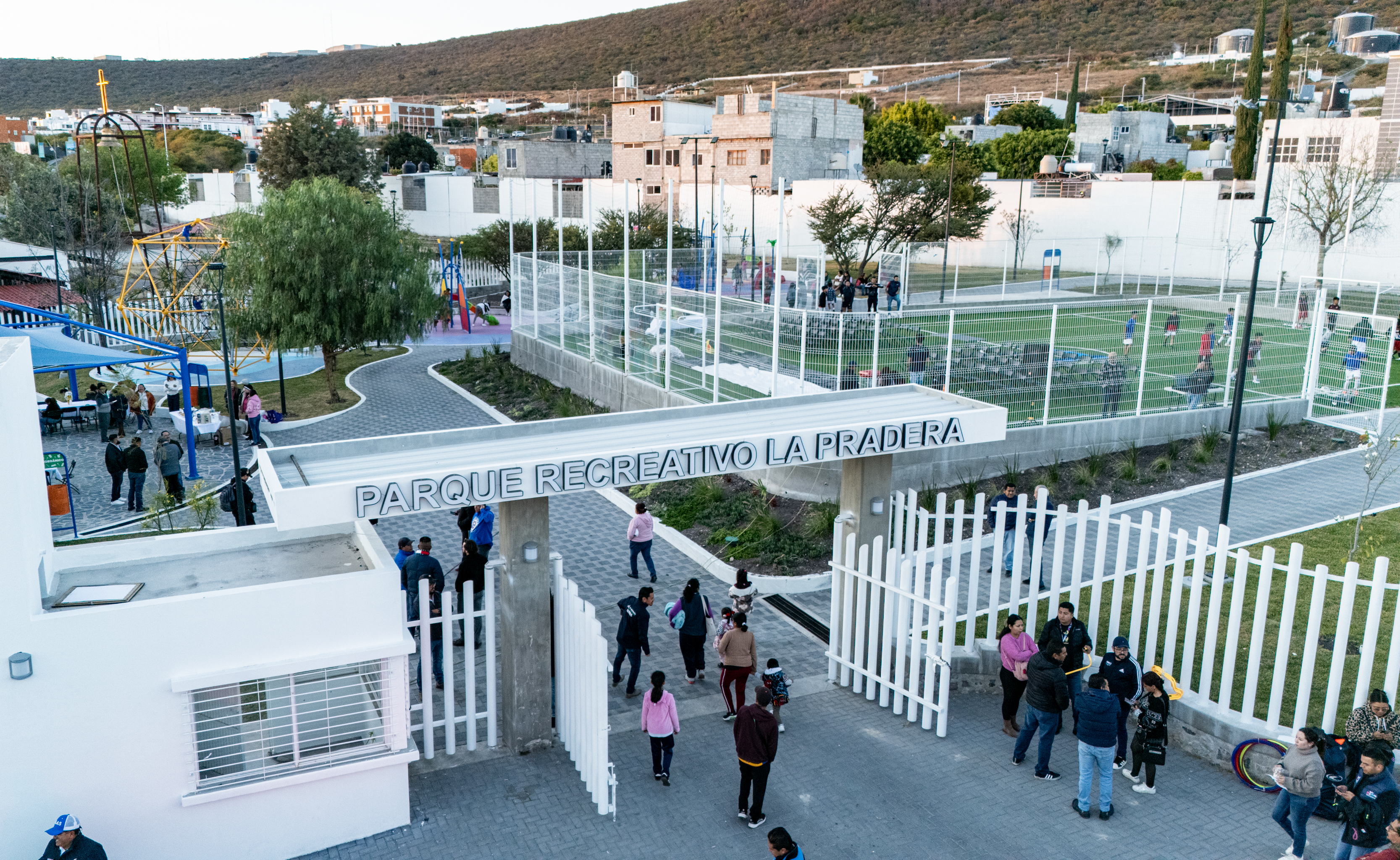 El presidente municipal de El Marqués, Rodrigo Monsalvo Castelán, realizó la entrega oficial del parque recreativo en el fraccionamiento La Pradera, un espacio que beneficiará a más de 19 mil marquesinos con infraestructura deportiva de primer nivel que contribuirá con la activación física y el bienestar de niñas, niños, jóvenes y adultos de la localidad.