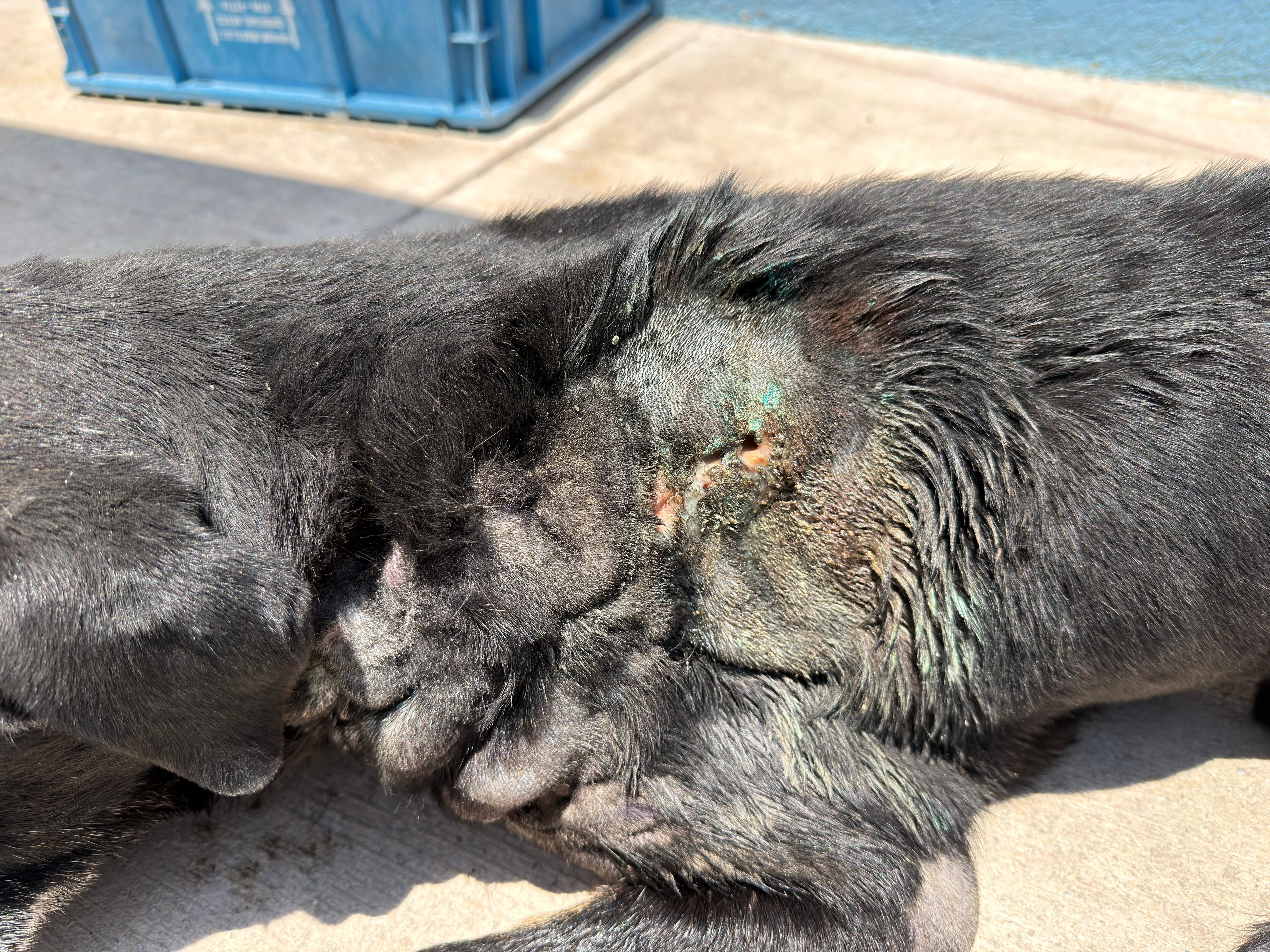 Cabe destacar que el perro fue atendido mediante un protocolo integral enfocado en la eliminación total de la infestación por gusano barrenador, el control del dolor y el tratamiento de las lesiones.