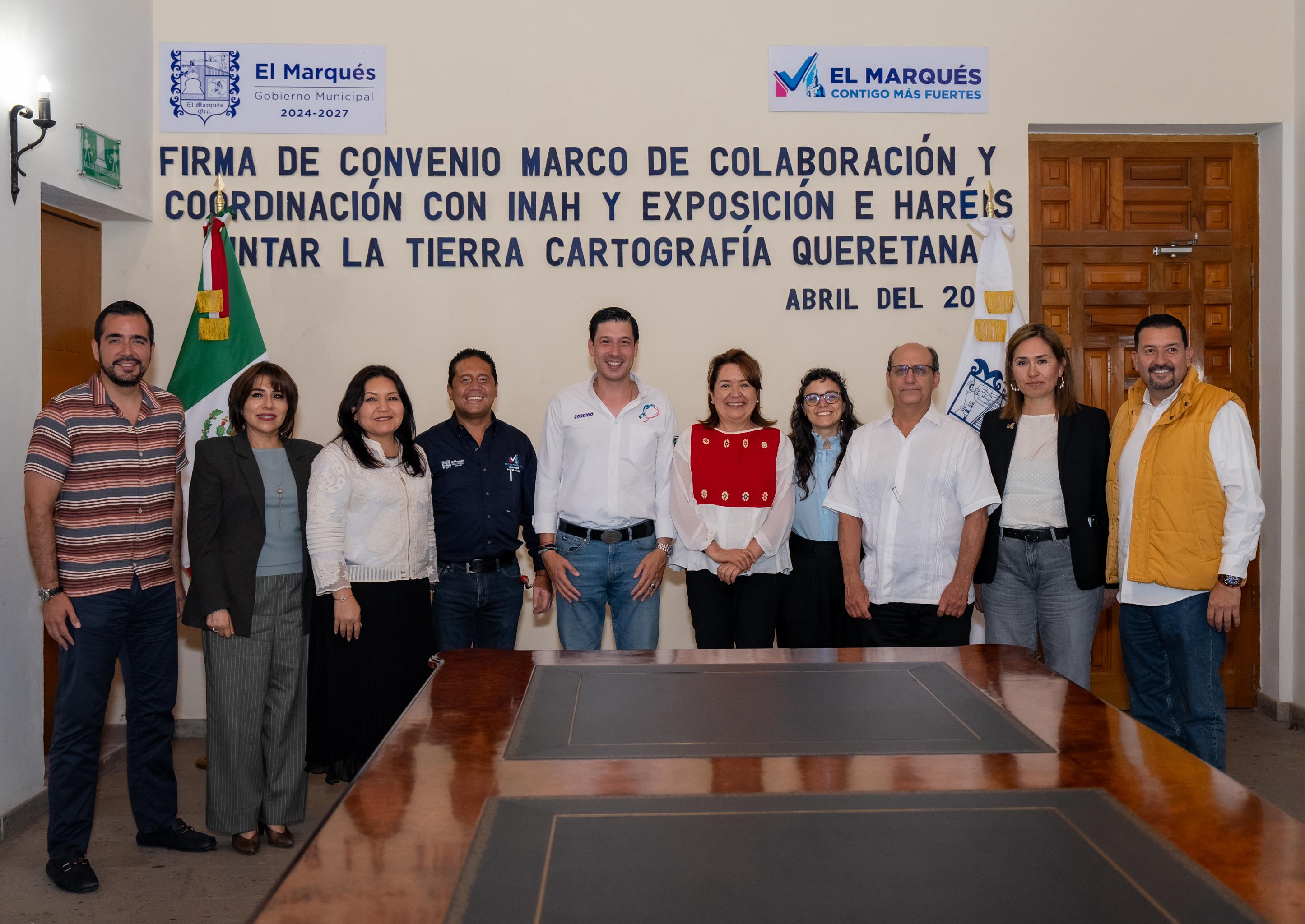 El presidente municipal de El Marqués, Rodrigo Monsalvo Castelán encabezó la firma del Convenio Marco de Colaboración y Coordinación con el Instituto Nacional de Antropología e Historia (INAH), acompañado por la titular del INAH Querétaro, Rosa Estela Reyes García, en un acto realizado en el Centro Municipal en Jesús María.