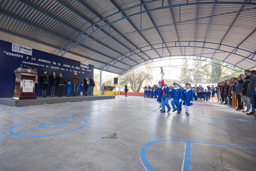 Enrique Vega encabeza ceremonia de Honores a la Bandera en preescolar de San Isidro Miranda