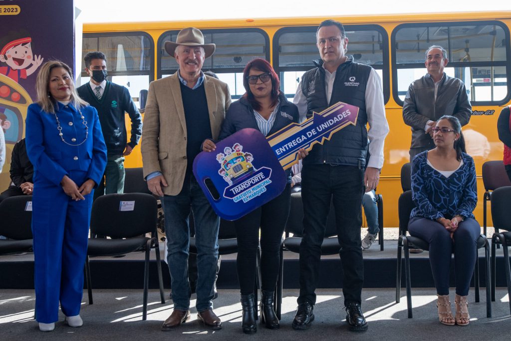 Entregan Enrique Vega y Mauricio Kuri, 20 camiones para el Programa de Transporte Gratuito Municipal en El Marqués.