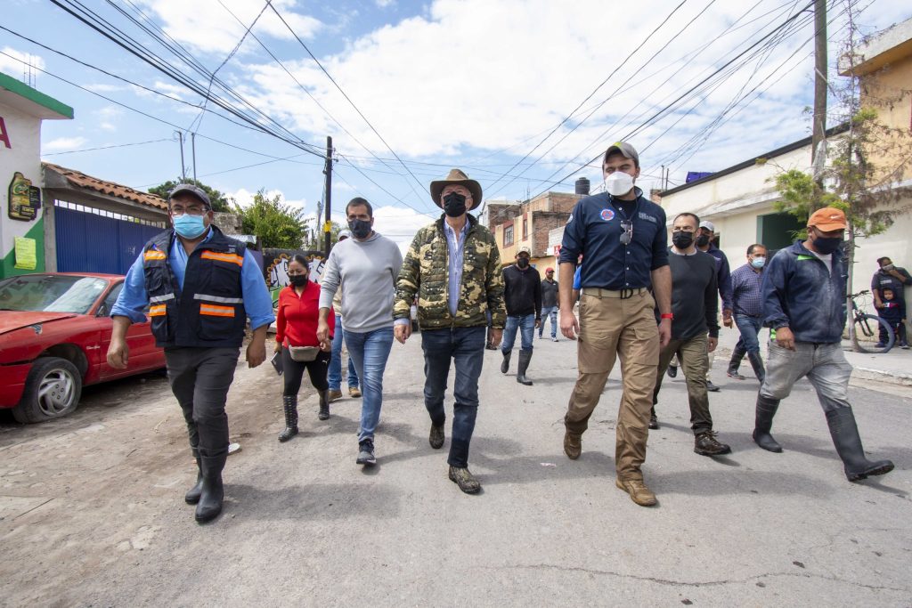 Recorren Mauricio Kuri y Enrique Vega, zonas afectadas por las lluvias, en El Marqués.